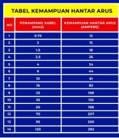 Berdasarkan tabel KHA kabel berpenampang 4 mm2, 2 inti kabel memiliki KHA 30A, memiliki kerapatan arus 8,5A/mm2. Kerapatan arus berbanding terbalik dengan penampang penghantar, semakin besar penampang penghantar kerapatan arusnya mengecil. Formula-formula untuk menghitung besarnya Rapat Arus, Kuat Arus dan Penampang Kawat:
